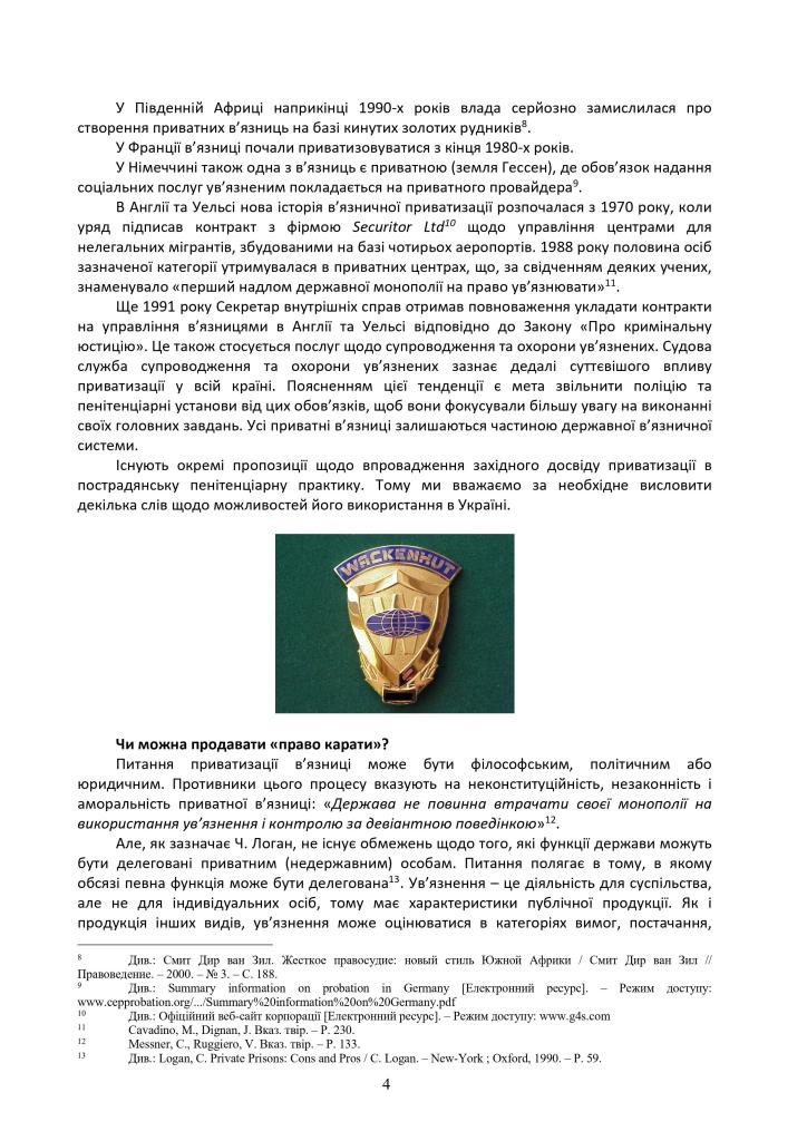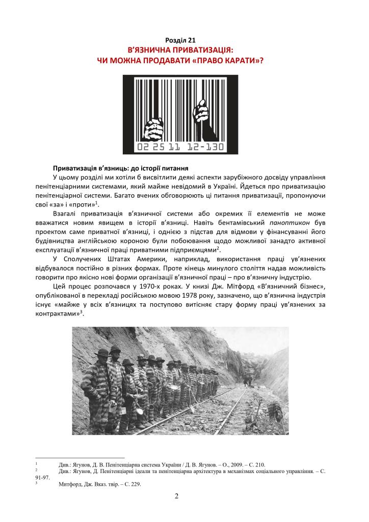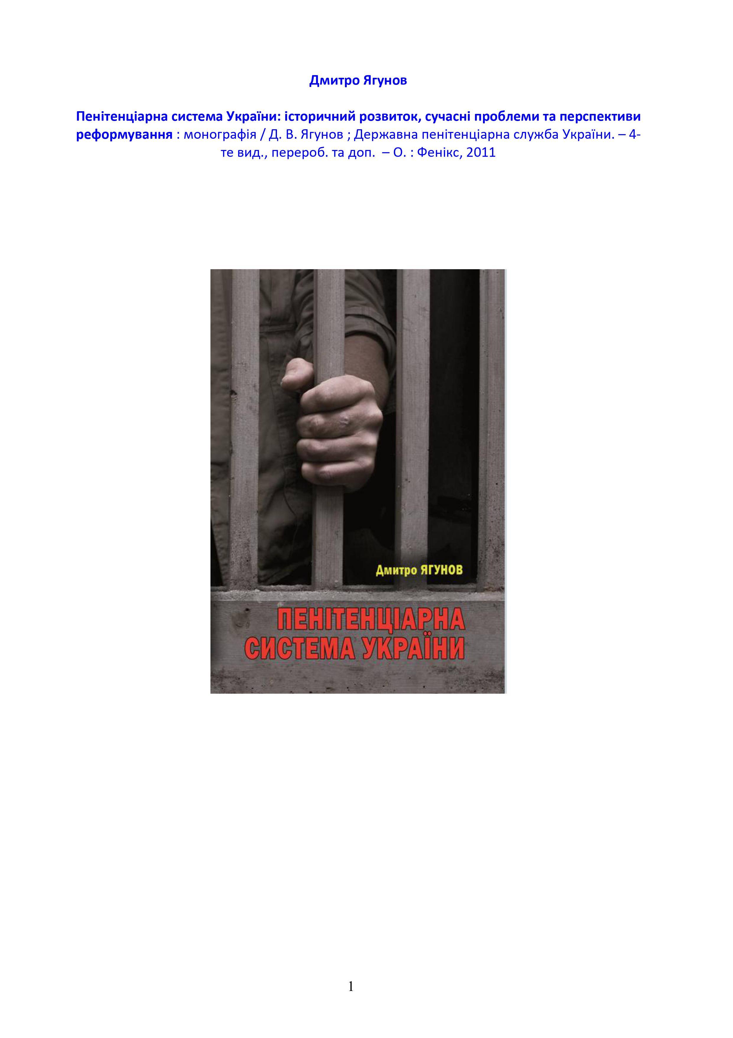 Глава 21 монографії “Пенітенціарна система України: історичний розвиток, сучасні проблеми та перспективи реформування” (Державна пенітенціарна служба України. – 4-те вид., перероб. та доп. – Одеса: Фенікс, 2011.