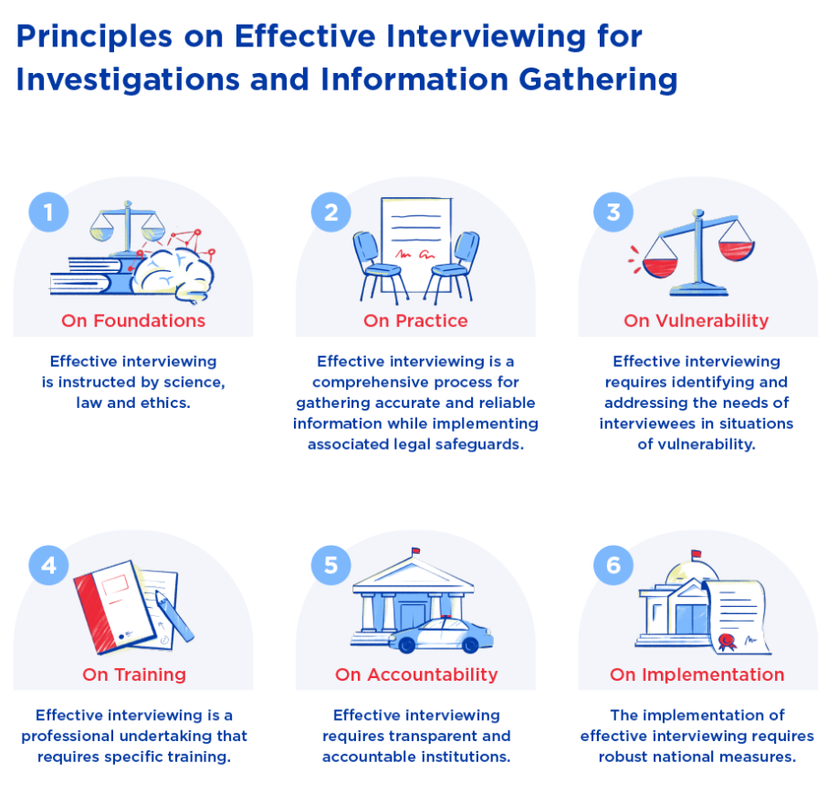 Ця Доповідь є результатом практичного втілення цього заклику. Відповідні принципи є результатом осмислення досвіду багатьох країн, де органи правопорядку та сили безпеки використовують результативне опитування, що призводить до кращих результатів у отриманні точної та достовірної інформації. Інформація, зібрана таким чином, також зберігає доброчесність та професіоналізм самих інтерв’юерів та підвищує довіру громадян до відповідних національних установ.
