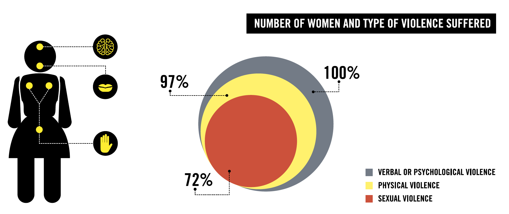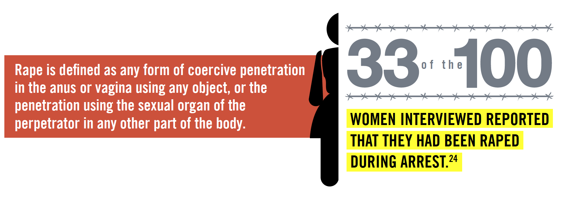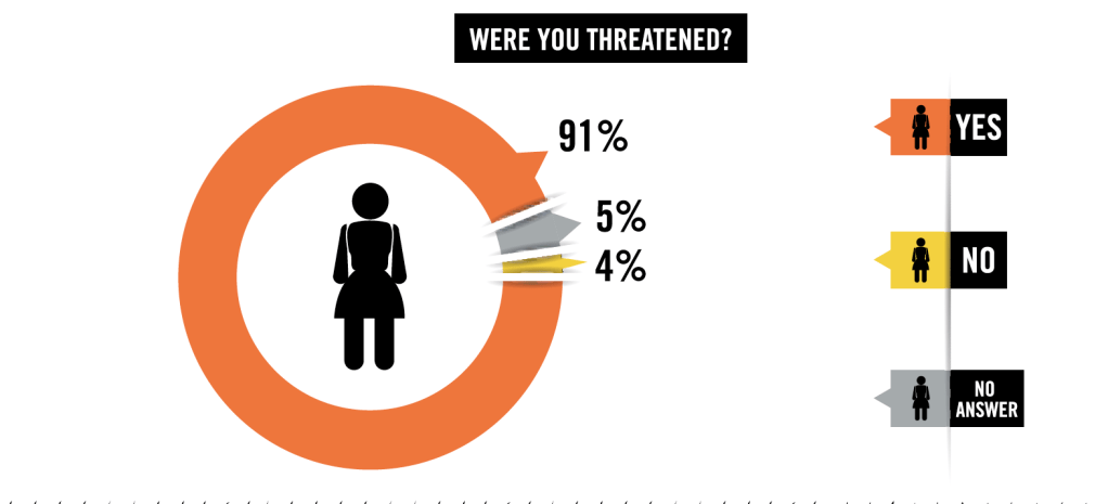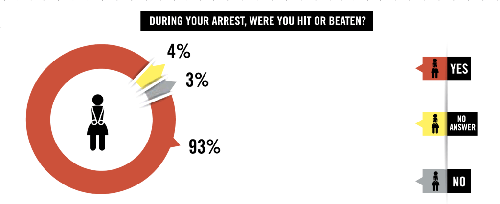 У рамках цього дослідження Amnesty International опитала 100 жінок, які повідомили про застосування до них насильства під час арешту, і виявила, що всі вони детально описали певну форму сексуальних домагань або психологічних знущань, включаючи образи та погрози.