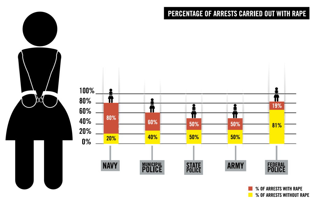 Дослідження демонструє, що мексиканська поліція та збройні сили регулярно катують і жорстоко поводяться з жінками, і сексуальне насильство щодо жінок є, на жаль, звичайною справою під час арештів та допитів.