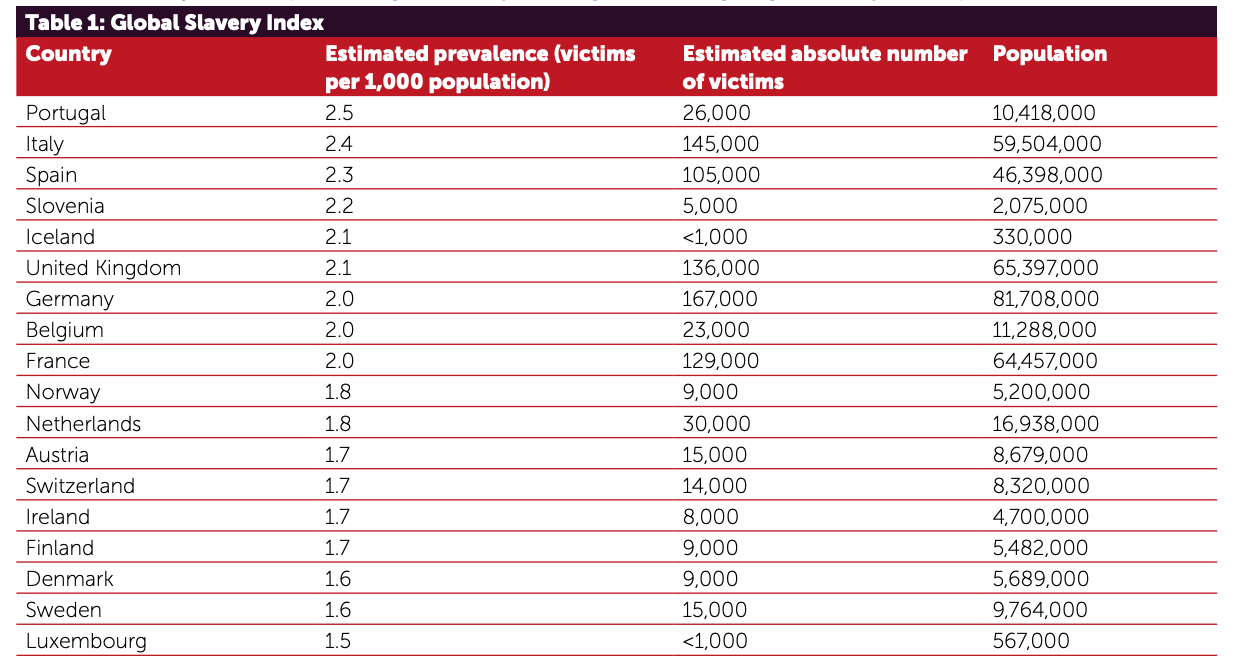 За оцінками Глобального індексу рабства у 2018 році, у Великій Британії було 136 тис. жертв сучасного рабства.