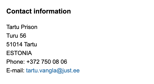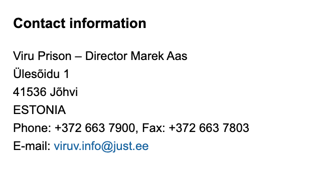 Визнаючи зусилля естонської влади щодо забезпечення засуджених ув’язнених цілеспрямованою діяльністю поза камерами, залишаються непоодинокі випадки, що значна кількість таких ув’язнених не отримує такої діяльності на регулярній основі.