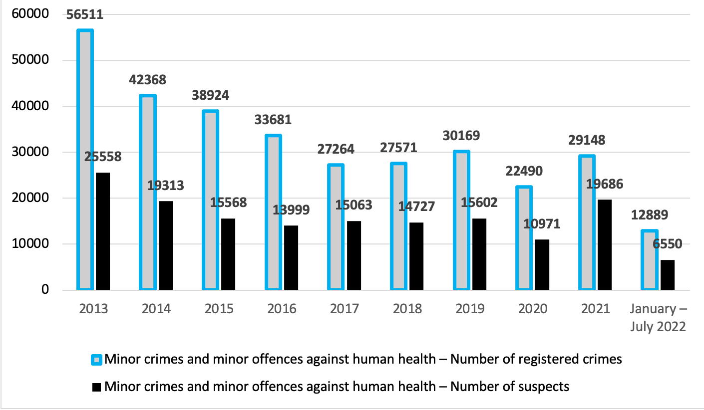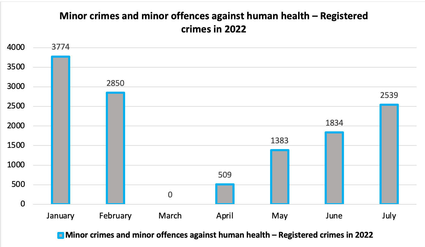 Summary statistics of minor crimes and minor offenses against health by month in 2022.
