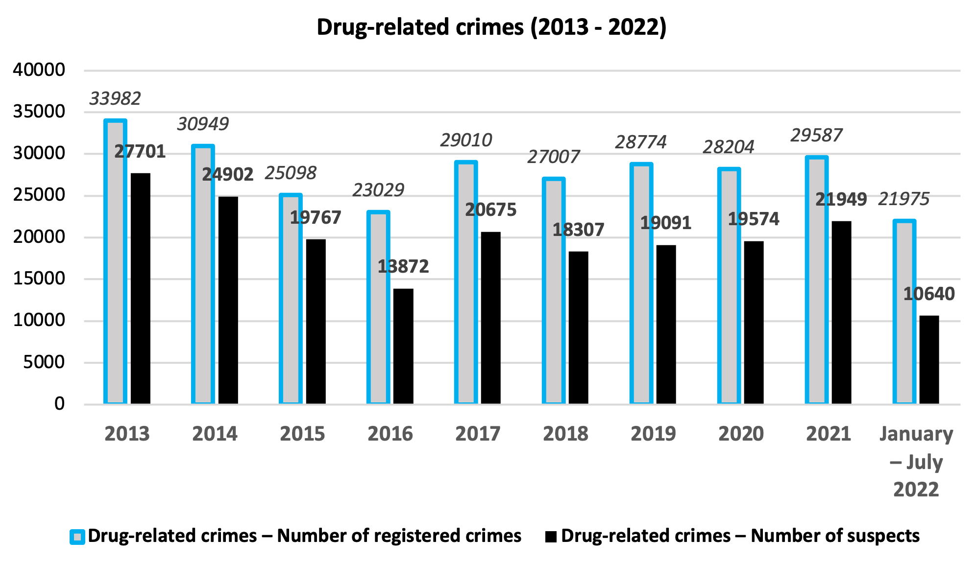 Moreover, if we analyze crime statistics for the period 2013 – 2022 (July), it turns out that already in the first 7 months of 2022, the number of registered crimes is almost equal to the annual indicators of 2015 or 2016.