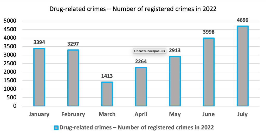 However, already in May 2022, the indicators of drug crime almost caught up with the pre-war indicators, and in July 2022 they significantly exceeded them.