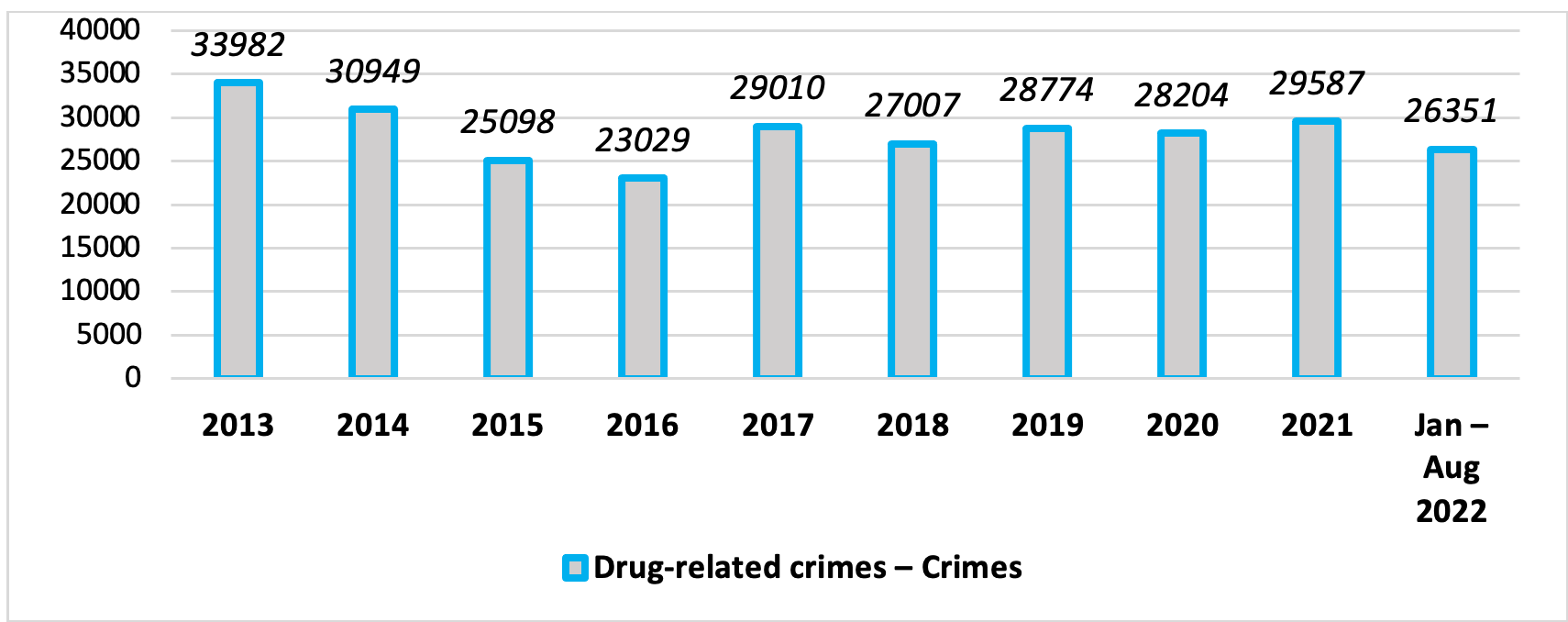 Moreover, we can expect that the number of drug-related crimes in 2022 could be bigger for the period of the last 10 years.