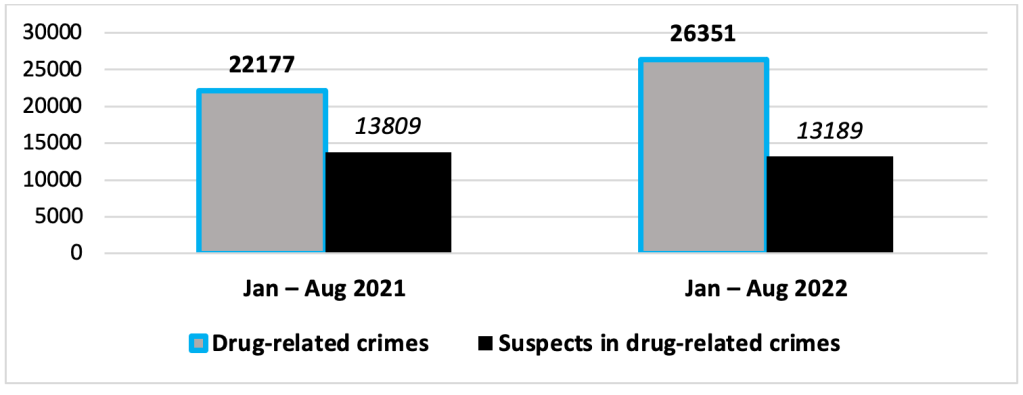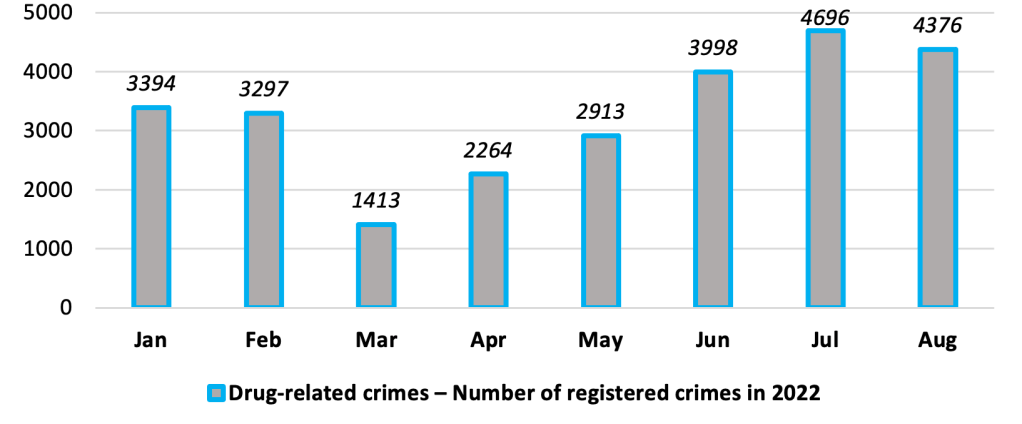 Moreover, the 2022 crime statistics show that the number of drug-related crimes for the period of wartime eight months of 2022 appears even bigger than the number of the same crimes for the whole relatively ‘peacetime’ of 2015 or 2016.