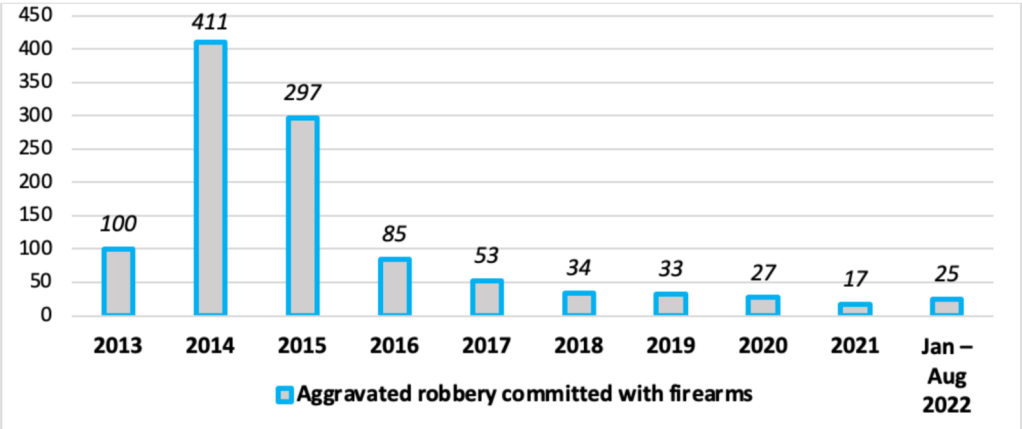 Yes, it is obvious that the number of crimes committed with weapons has seriously risen for the eight months of 2022 comparing even with the whole year of 2021.