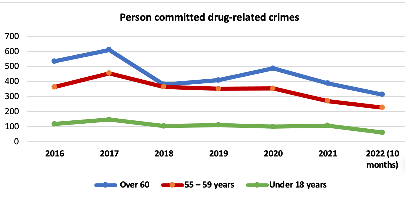 Інше цікаве кримінологічне спостереження щодо показників злочинності пов’язане з кількістю осіб, які вчинили злочини у сфері нелегального обігу наркотиків.