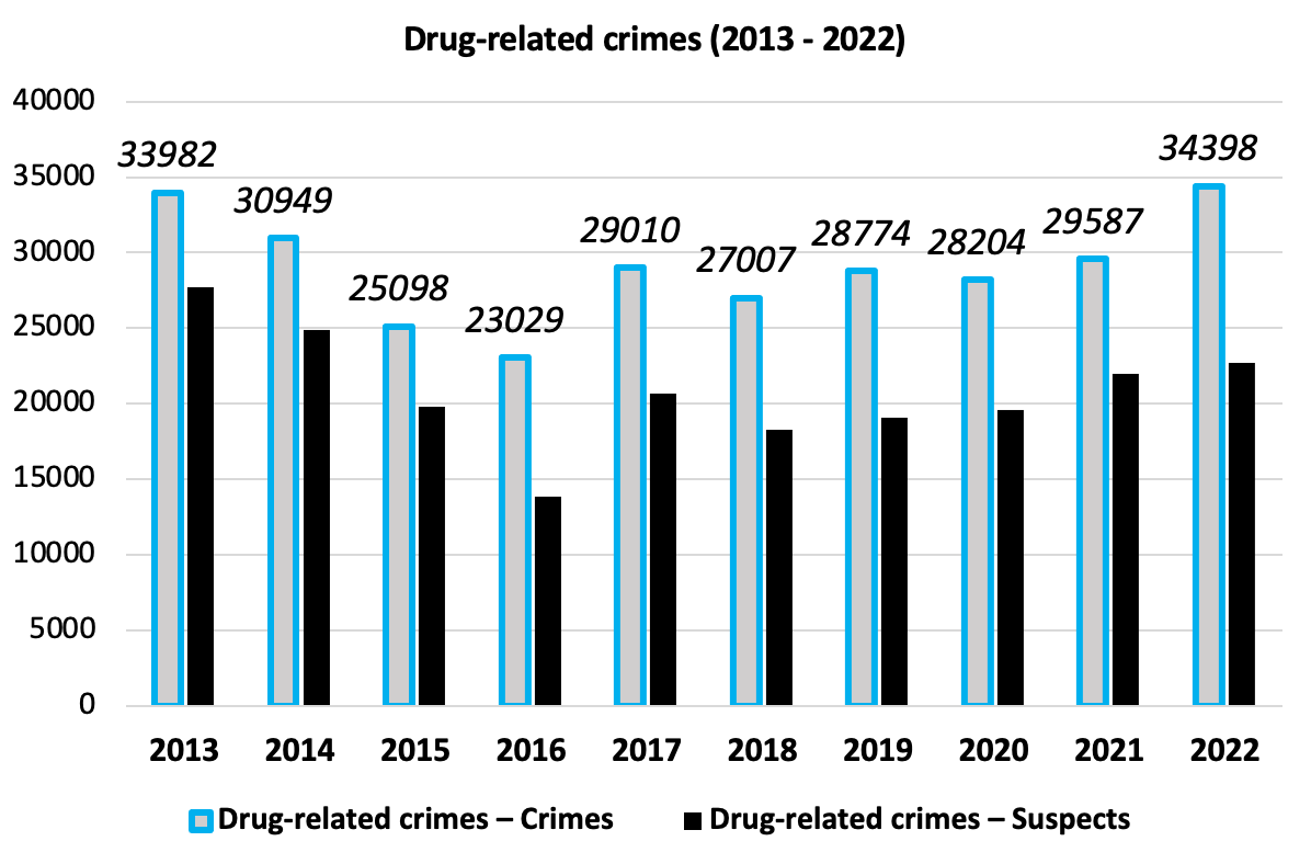 The statistics of drug crimes for the period 2013-2022 are very interesting.