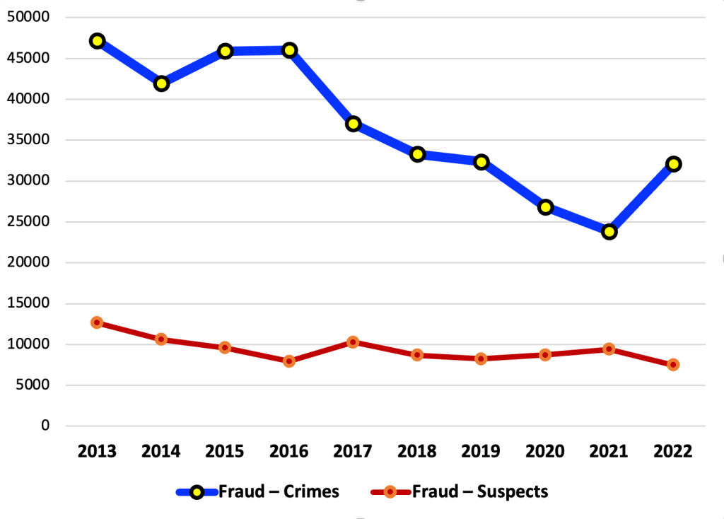 Increase in fraud – misdemeanors, and fraud – crimes.