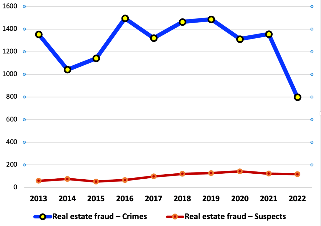 A sharp decline in real estate fraud, which can be attributed to the war’s impact on the real estate market.