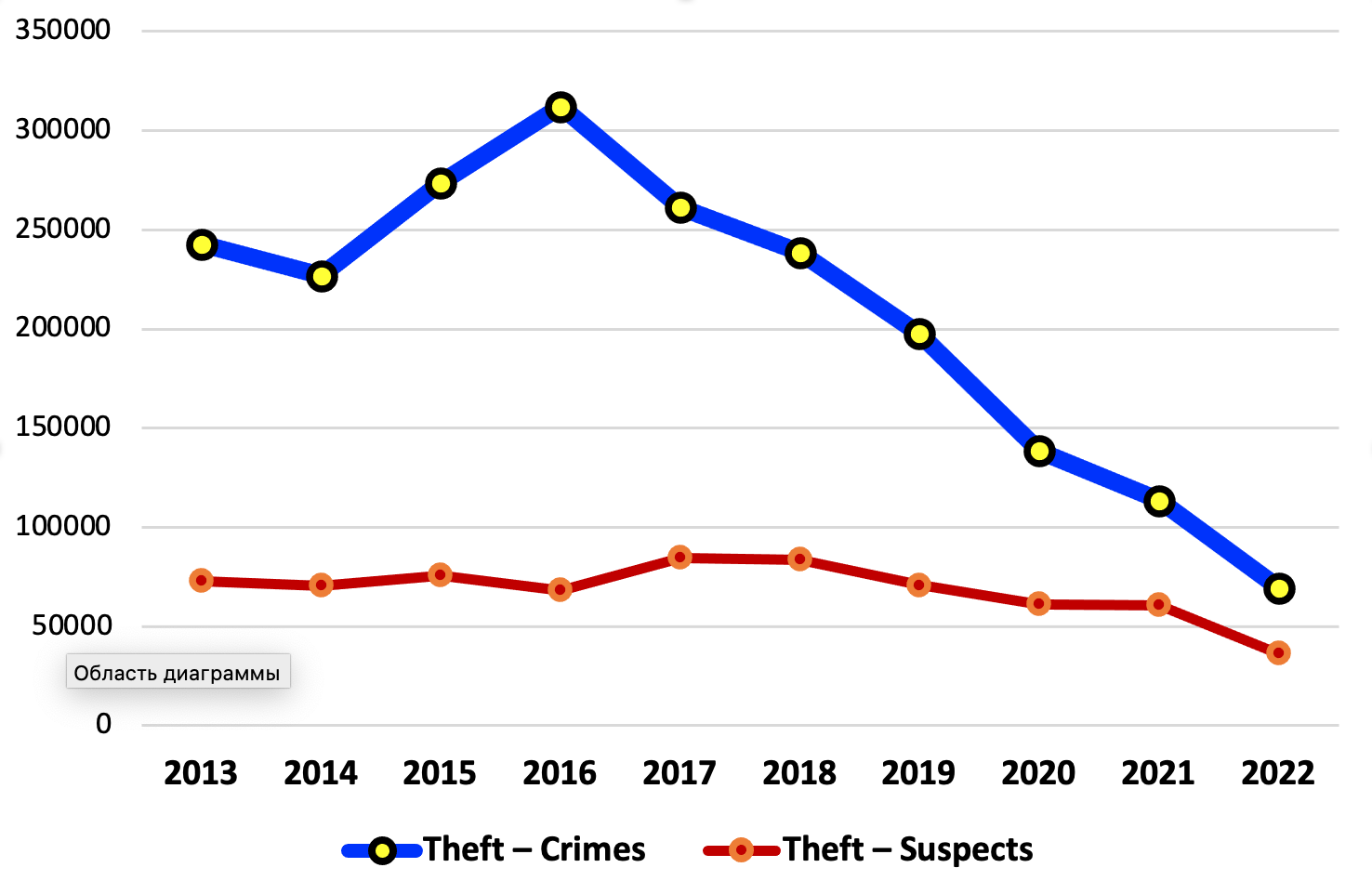 A significant decrease in thefts (although, on the other hand, the tendency to decrease thefts existed even before the beginning of the war).