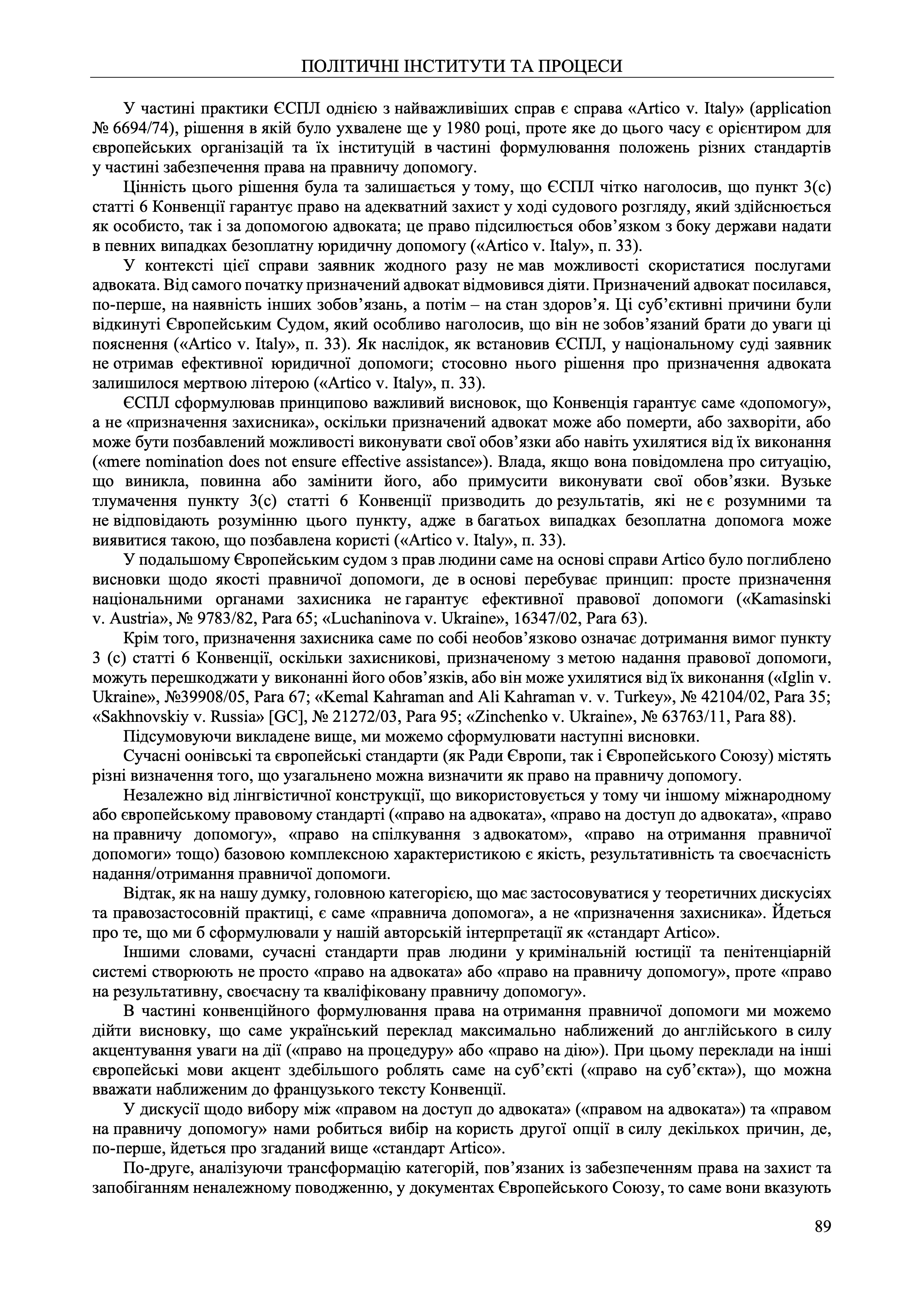 The author focuses on one of the most important cases on the subject of this study, namely, the ECtHR judgment in the case of Artico v. Italy, which is still a benchmark for European organisations and their institutions in terms of formulating the provisions of various standards in terms of ensuring the right to legal aid.