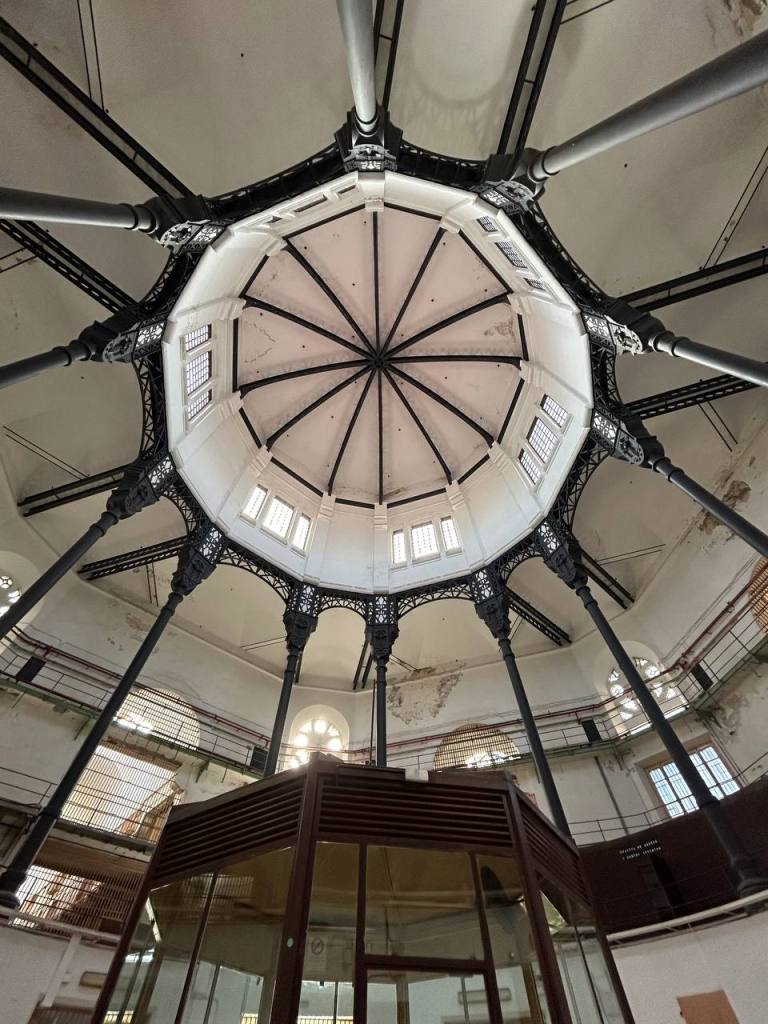 Будівля була побудована між 1881 і 1904 роками під наглядом архітекторів Хосепа Доменека-і-Естапа та Сальвадора Віньялса-і-Сабате [ca] на основі проекту в’язниці «паноптикому», запропонованого у 1787 році філософом-утилітаристом Джеремі Бентамом.