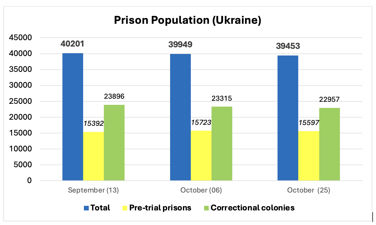 Станом на 25.10.2024 всього в ДКВС утримувалося 39453 особи, з них: