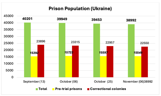 Станом на 06.11.2024 у пенітенціарних установах в Україні утримувалося 38992 особи. Кількість ув’язнених знову дещо знизилася, що є позитивним. Хоча, … Більше