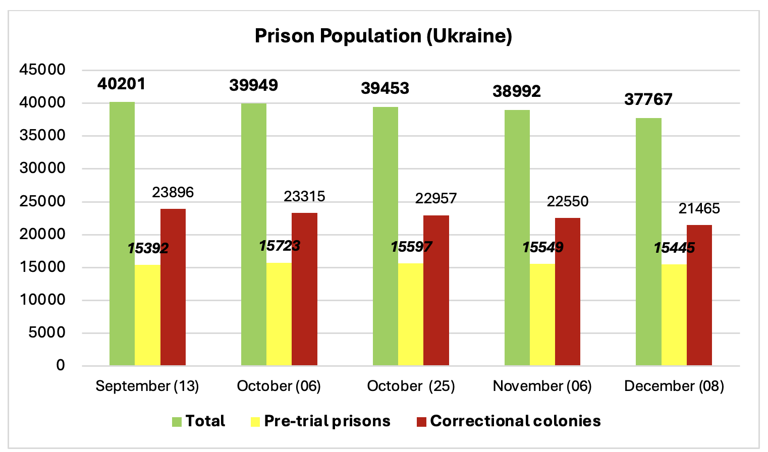 Кількість ув’язнених знову дещо знизилася, що є позитивним. Хоча, знов-таки, потрібно брати до уваги загальну кількість населення України.