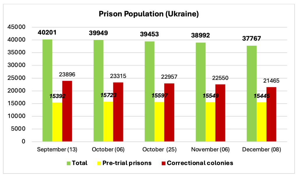 Станом на 06.11.2024 у пенітенціарних установах в Україні утримувалося 38992 особи.