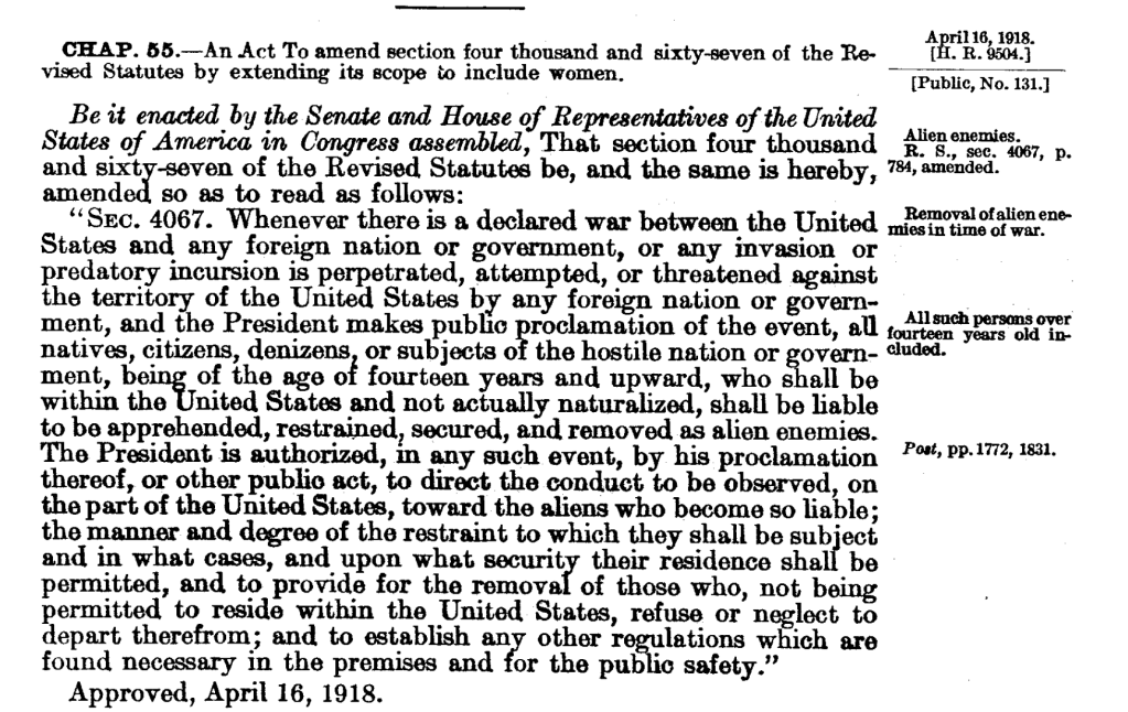 14 березня 2025 року, президент Трамп послався на Закон про іноземних ворогів, щоб віддати наказ про депортацію підозрюваних членів в’язничних та вуличних банд, яких він звинуватив у «незаконному проникненні» до США.