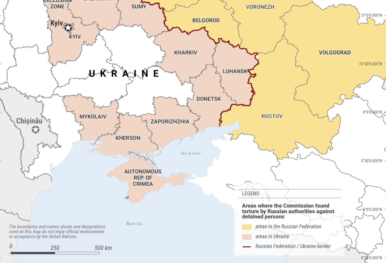 Комісія раніше дійшла висновку, що російська влада застосовувала катування як злочини проти людяності. Її нещодавні розслідування ще раз підтвердили, що коли співробітники Федеральної служби безпеки були присутні в місцях позбавлення волі, вони користувалися найвищою владою. Вони застосовували або наказували застосовувати катування на різних етапах утримання під вартою, зокрема, під час допитів, коли застосовувалося найжорстокіше поводження.